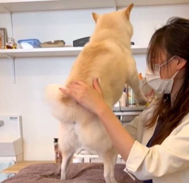 생각지도 못한 강아지의 행동에 수의사 선생님도 귀여웠는지 이내 응석을 다 받아주면서 진찰을 하셨다는 후문입니다.