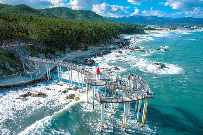 전망대에 오르는 길도 아주 멋진데요, 숲길을 따라 천천히 걷다 보면 어느새 닻 모양의 독특한 전망대가 눈앞에 펼쳐집니다. 이곳에서 바라보는 풍경은 그야말로 압도적이에요. 특히, 일출 시간에는 붉게 물든 하늘과 바다가 어우러져 말로 표현할 수 없는 아름다움을 자아내죠.