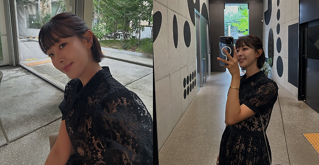 #비법 1: '이너'를 제2의 피부처럼 고원희는 비침이 있는 블랙 레이스 원피스 안에 같은 톤의 심플한 슬립 드레스를 레이어드했다.