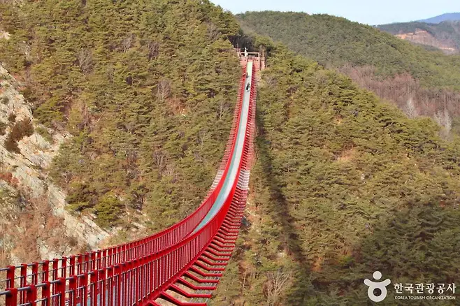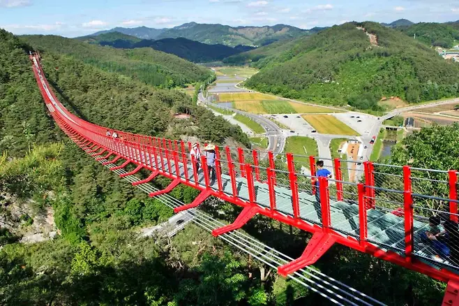 순창 여행의 대표 코스인 채계산 출렁다리는 길이 270m의 현수교다. 산 중턱 데크길을 따라 오르면 마치 구름 위를 걷는 듯한 체험이 가능하다. 특히 4월 말엔 이곳에서 ‘순창 채계산 유채꽃 축제’가 열린다. 출렁다리 아래 노랗게 물든 유채꽃밭은 산 전체를 화사하게 감싼다.