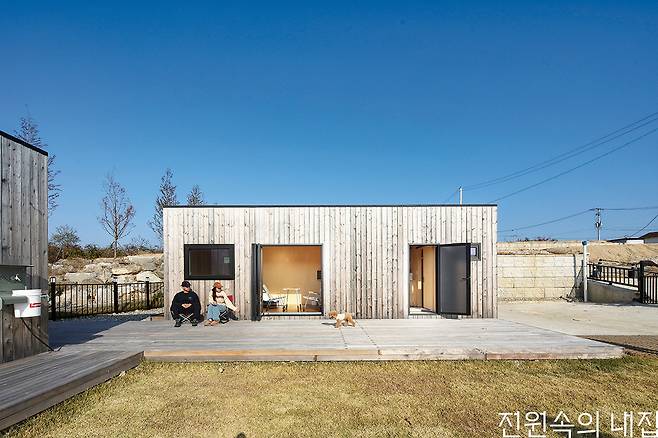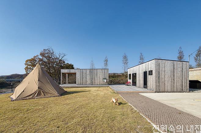부부는 평일에는 서울의 아파트에서 지내다 주말이면 반려견 봉춘이와 함께 이곳 연천 주말주택을 찾는다. 너른 잔디밭에는 텐트를 치고 처마 밑에서 모닥불을 피우며 쏟아지는 별을 감상하기도 하면서 일상의 피로를 회복하고 힐링하는 시간을 갖는다.