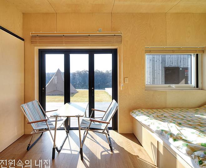 마룸은 쾌적한 9평 규모의 주택과 외부 화장실을 포함한 9평 규모의 창고(6평의 창고와 3평의 처마가 있는 구조)를 제안했다. 온전히 휴식을 취할 수 있는 주택동과 캠핑 장비들을 보관할 수 있는 창고동으로 나눠 주말주택의 한계를 극복하고 관리가 쉽도록 한 것이다.