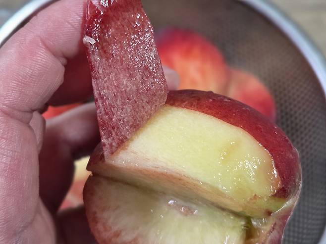 게다가 껍질이 아주 얇고 매끈해서 털이 거의 없기 때문에 껍질째 먹어도 전혀 거슬리지 않아요. 복숭아 껍질 싫어하시는 분들도 부담없이 드실 수 있어요.