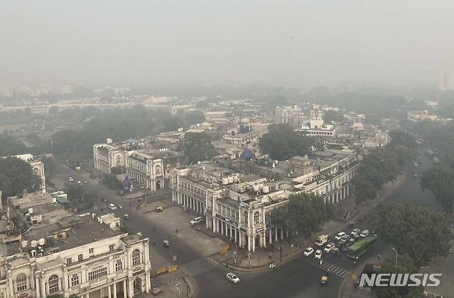 [뉴델리=AP/뉴시스] 4일(현지시간) 인도 뉴델리 시내 상공에 스모그와 짙은 안개가 끼어 있다. 인도 당국은 급격하게 나빠진 뉴델리의 대기질 개선을 위해 오염산업과 건설 활동을 중단하고 디젤 차량의 운행을 제한했으며 스프링클러와 공기 중으로 미세한 물방울을 대량으로 뿜어내는 '안티 스모그 건'을 배치했다. 2022.11.04.