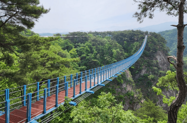 원주를 대표하는 랜드마크 중 하나인 소금산 출렁다리는 해발 200m 높이에 위치한 스릴 넘치는 다리로, 봄이 되면 주변 산이 연둣빛으로 물들면서 더욱 아름다운 풍경을 연출하는데요. 출렁다리를 건너는 순간 발 아래로 펼쳐지는 계곡의 절경이 짜릿한 스릴과 감동을 동시에 선사합니다.