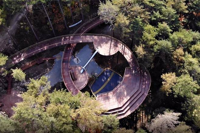 전망대까지 연결하는 하늘탐방로와 미니 집라인, 휠체어 그네, 그물 놀이터, 피크닉 쉼 등의 부대시설이 마련돼 있다.