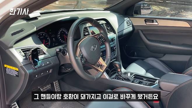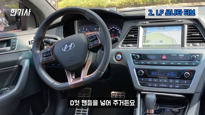 또 다른 장점은 일반 LF 쏘나타 대비해서 내/외관 디자인이 많이 달라요. 핸들부터가 너무 섹시해요. 쏘나타는 일반 원형 핸들이잖아요. LF 쏘나타 터보 모델부터는 D컷 핸들을 넣어주거든요. 그리고 패들시프트까지 같이 넣어줘요. 그러다 보니까 주행할 때 핸들 돌림에 있어서 원형 핸들보다 훨씬 낫지 않나 싶고요.