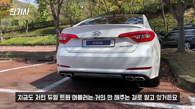 이때 뭐 벤츠 AMG 모델을 보고 영감을 얻었는지는 모르겠는데 지금 현행 나온 모델 중에서도 현대에서는 G70에도 이런 건 거의 안 달려서 나온 걸로 알고 있어요. 옵션을 넣어야 되거든요. 근데 현대에서는 중형 모델에, 그것도 2015년에 이걸 넣어줬다는 게 말이 안 나와요. 그리고 머플러 옆에 가운데 디퓨저도 싹 나와 있고요.