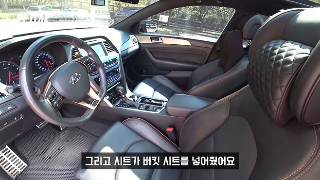 그리고 시트를 버킷 시트를 넣어줬어요. 옆에를 좀 잡아주는 게 원래는 이렇게까지 잡아주는 건 아닌데 스포츠 모델이기 때문에 시트를 좀 조여서 달려 나갈 수 있는 마음의 준비를 하도록 해줘요. 속도를 냈을 때 날 잡아줄 수 있는 그런 느낌이에요.