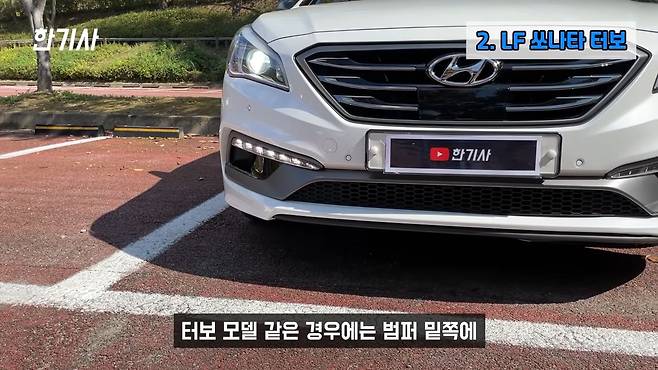 그리고 실외 디자인의 차이도 굉장히 커요. 전면 범퍼 부분부터 좀 많이 다른데요. 일반 2.0 모델은 데이라이트가 라이트 쪽에 달려있는데 터보 모델 같은 경우에는 범퍼 밑쪽에 안개등이 빠지고 그쪽에 데이라이트가 바로 들어가요.