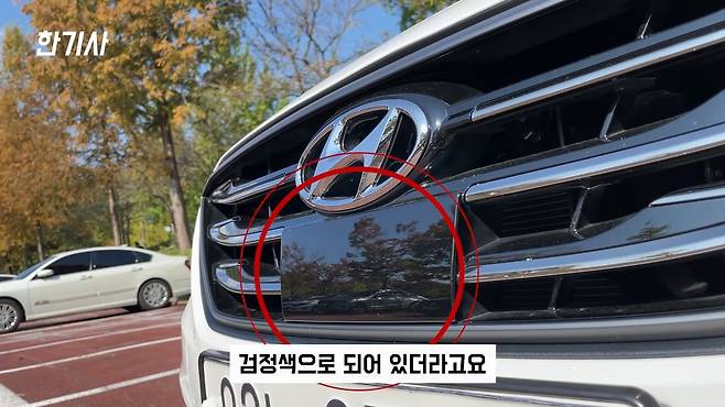 그리고 이 차량은 어댑티브 크루즈 옵션이 있는 모델이어서 김이 한 장 더 붙어 있거든요. 동종의 다른 모델 같은 경우에는 그릴 쪽에 아크릴판을 투명색으로 해주는데 이 차는 왜 콧수엽을 추가했는지 모르겠어요. 검정색으로 되어 있더라고요.