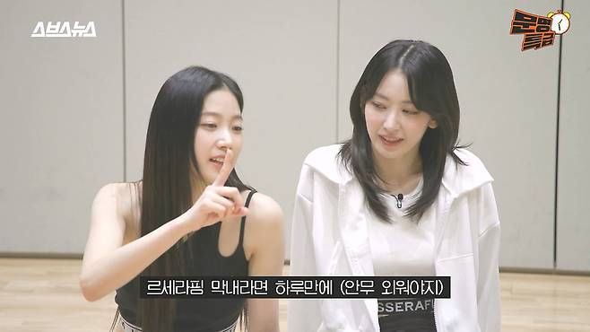 르세라핌 막내는 왜 빤스를 밖으로 입어요? 막내 자리 재재가 넘보고 왔습니다 은채 언니 저 07년생이에요