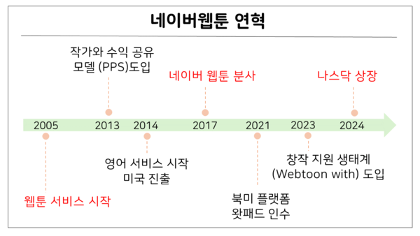 웹툰엔터테인먼트는 지난달 미국 증권시장에서 상장했다. 회사는 북미 등 해외 시장에서의 이용자, 창작자 유입 증가 계획을 발표했다. 웹툰엔터테인먼트의 매출 80%는 이용자의 콘텐츠 유료 이용에서 나오기 때문이다. 네이버의 웹툰 사업은 웹툰 작가가 플랫폼 안에 들어와 콘텐츠를 제작하고, 이용자들이 이를 유료로 이용하는 성장 모델을 구축했다. 이 때문에 웹툰 작가가 콘텐츠 흥행으로 더 많은 수익을 얻는 수익 공유 시스템을 마련했다.