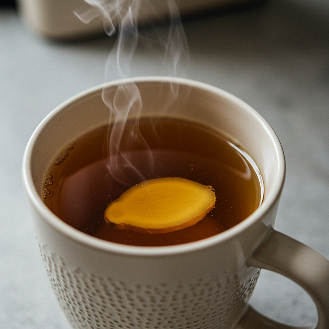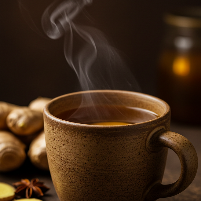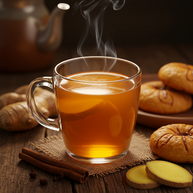 자극적인 진한 농도보다는 생강 2~3조각만 넣고 끓인 연한 차가 좋습니다.