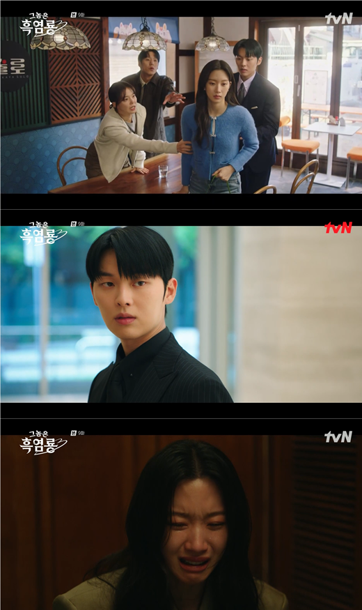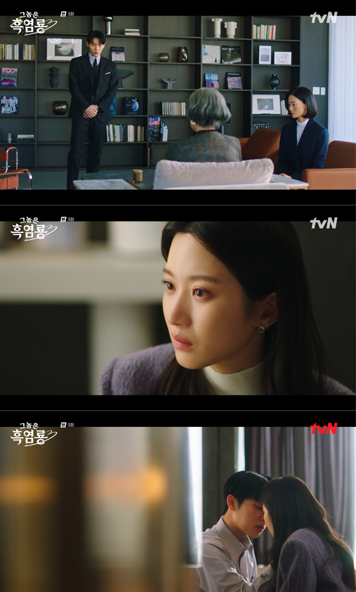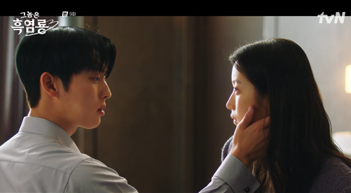 17일 tvN 월화드라마 '그놈은 흑염룡'에서는 백수정(문가영 분)과 반주연(최현욱)이 이별을 맞이했지만 서로를 이해하고 재회하는 모습이 그려졌다. 수정은 흑염룡이 주연이라는 사실에 이별을 선언했고 주연은 "난 못 헤어져요. 우리가 왜 헤어져야 하는데"라며 필사적으로 매달렸다.