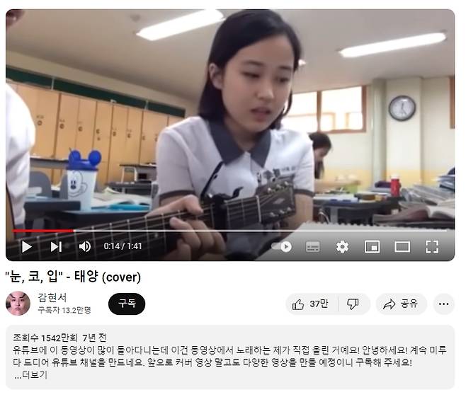교실에서 기타 반주에 맞춰 노래를 부르는 감현서의 영상은 유튜브에서 알고리즘을 타면서 무려 1542만회라는 놀라운 조회수를 기록했다.