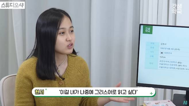 이어 "한국에는 공부할 수 있는 과가 없었다"며 "철학과에 가서 고대철학을 공부하면 그리스어를 공부할 수 있으니까 철학과가 제일 좋은 선택이 아닐까 생각했다"고 설명했다.