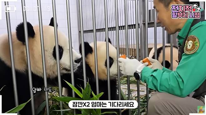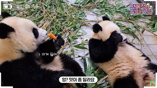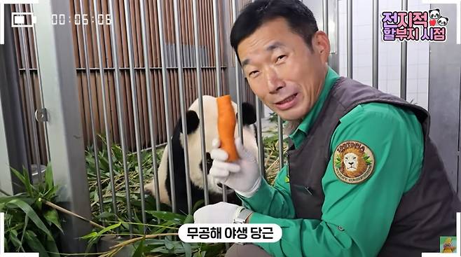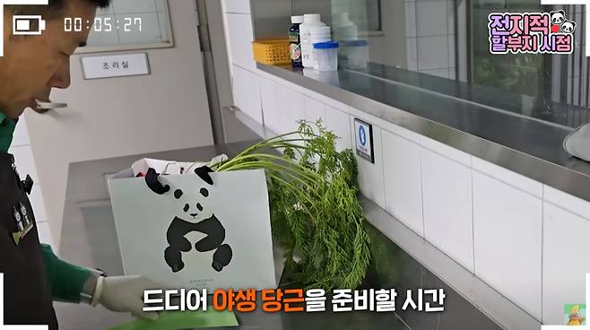 지난 18일 공개된 말하는동물원 뿌빠TV 전할시 199번째 에피소드에서도 강바오, 강철원 주키퍼가 아이들에게 음식을 준비해주는 모습이 공개됐습니다. 하지만 이번에는 특별했습니다. 강바오의 텃밭에서 캔 '야생 당근'을 바오 가족들에게 준 것이죠.