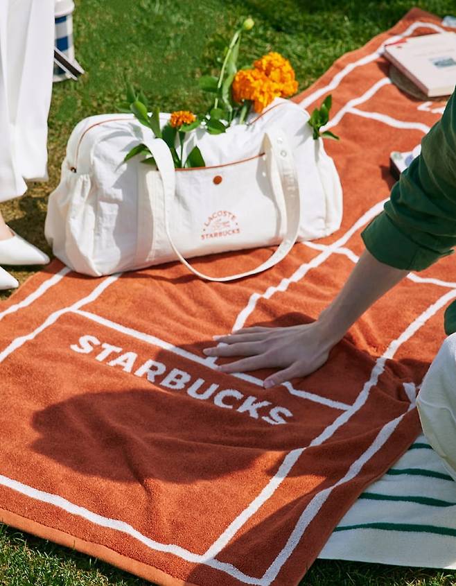 트렌타월은 총 길이 180cm의 대형 타월로, 요가타월이나 비치타월로도 쓸 수 있다. 라코스테와 스타벅스는 이 제품에 OEKO-TEX(오코텍스) 인증 원단을 사용해 안전한 공정까지 고려했다.