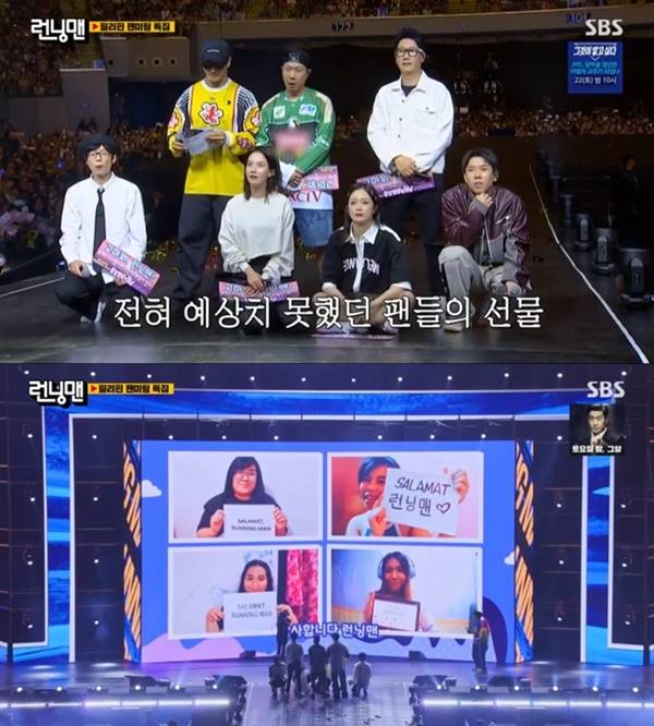SBS 간판 예능 <런닝맨>이 3년 만에 해외 팬들과 반가운 만남을 가졌다. 16일 방영된 <런닝맨>에선 지난 4월 1일 필리핀 마닐라 SM Mall of Asia Arena(MoA Arena)에서 거행된 팬미팅 'Running Man: A Decade of Laughter' 행사 및 비하인드 내용이 소개되었다.