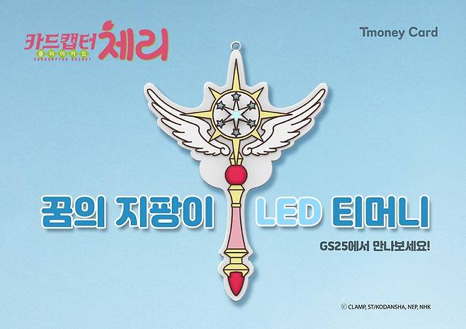 이번에 출시되는 ‘꿈의 지팡이 LED 티머니’는 ‘카드캡터 체리 : 클리어카드’ 애니메이션 속 ‘꿈의 지팡이’를 작은 사이즈의 키링으로 구현했다. 소지품에 달고 다니기 좋은 형태와 태깅할 때 지팡이에 불이 들어오는 유니크한 디자인으로 소장욕구를 불러 일으키는 디자인이다. ‘꿈의 지팡이 LED 티머니’의 권장 소비자 가격은 1만 8천 원으로, 오는 24일부터 전국 GS25 편의점에서 구매 가능하다.