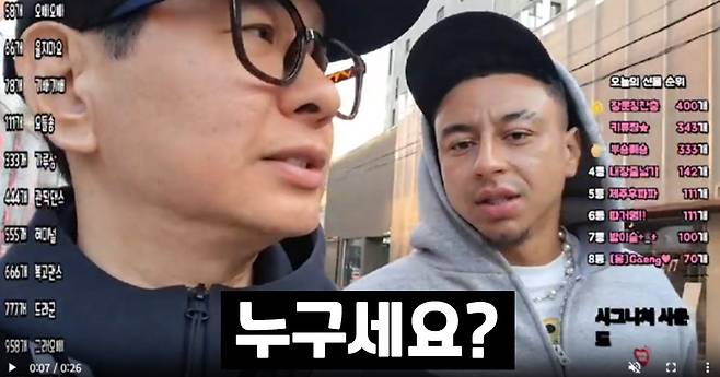 11일 각종 온라인 커뮤니티에는 '개그맨 박성호 야방중 만난 의외의 인물'이라는 제목의 짧은 영상이 올라왔습니다. 영상 속에서 박성호는 길거리에서 온라인 방송을 진행하고 있었는데, 회색 후드집업에 검은 모자를 쓴 한 남성이 화면에 등장했습니다. 이 남성은 다름 아닌 잉글랜드 맨체스터 유나이티드 출신이자 K리그 FC서울에서 뛰고 있는 빅스타 제시 린가드였습니다.