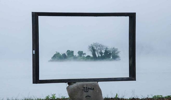 두물머리의 대표적인 사진 명소는 액자 모양의 포토존입니다. 드라마 ‘그녀는 예뻤다’의 촬영지로 알려지며 더욱 인기를 끌게 되었죠. 강과 하늘, 느티나무가 한 폭의 풍경처럼 액자 안에 담겨 누구나 특별한 사진을 남길 수 있습니다.