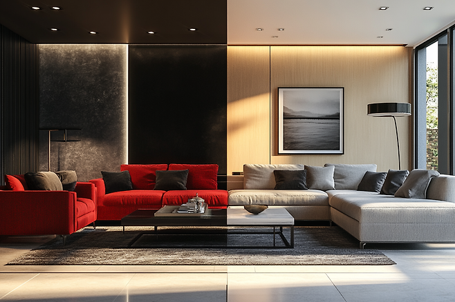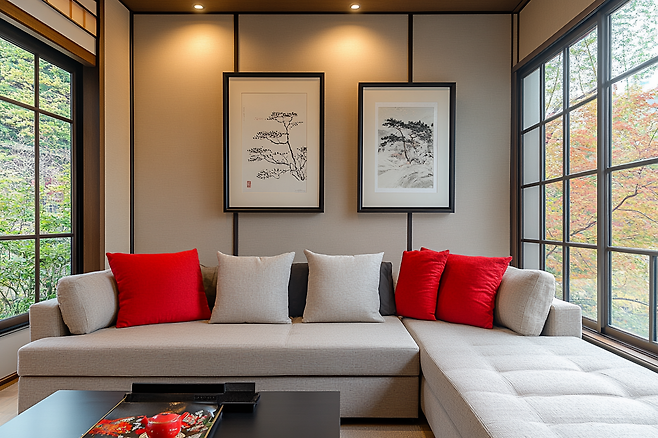 ✔ 추천 팁: 빨간색은 쿠션이나 그림처럼 한두 군데 포인트로 쓰고, 회색이나 베이지로 나머지 공간의 톤을 눌러주는 게 좋아요.