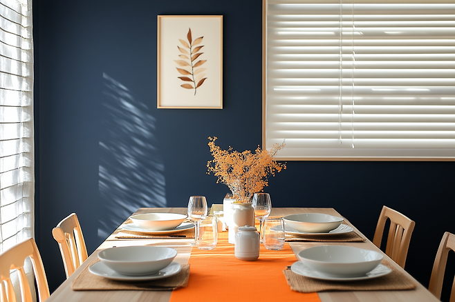 파랑과 주황은 서로 반대되는 색으로, 조화롭게 사용하면 개성 있는 공간을 만들 수 있어요.