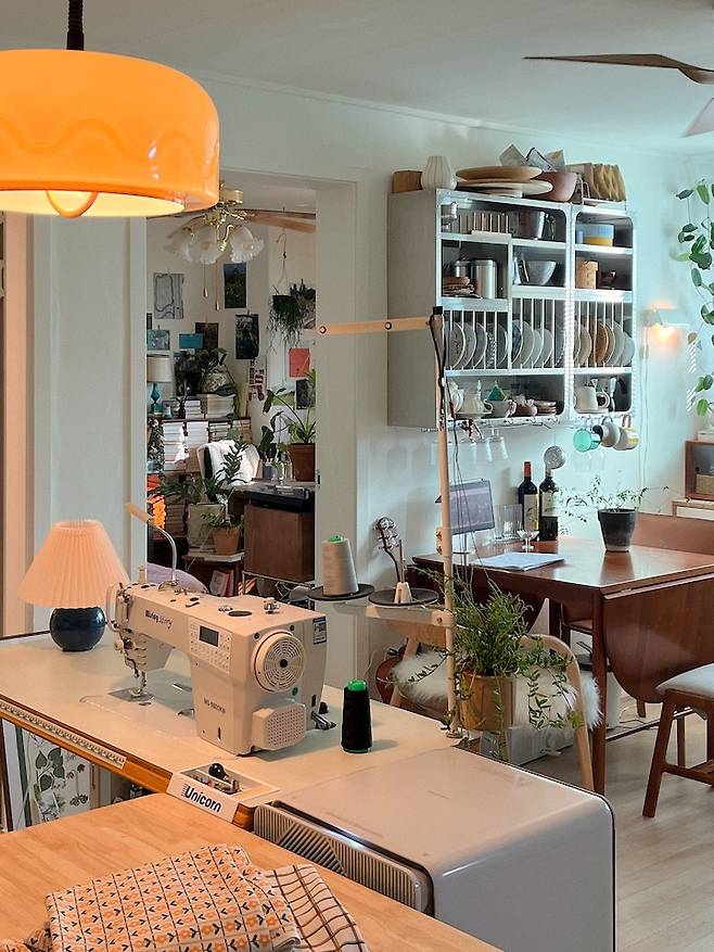 1년 정도 작업실을 따로 쓰다가 좀 더 시간을 들여서 다양한 걸 할 수 있는 공간을 다시 만들고자 이번 이사 때 다시 집으로 들였어요. 일하는 공간과 쉬는 공간을 분리하고 싶었는데 지금은 상황에 맞춰서 공간 분리가 아닌 시간 분리의 개념으로 바꾸고 있습니다. 모든 걸 마음에 드는 대로 할 수 없으니 마음을 조금 바꿔 보는 것도 괜찮은 것 같아요-