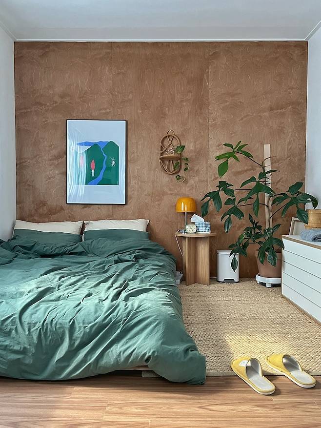 안방 안쪽에 있는 침실입니다 :) 해가 너무 잘 드는 방이라 처음부터 침대를 안쪽에 배치하는 걸로 시작했어요.