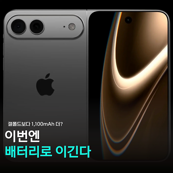 애플 분석가 '밍치궈'는 고밀도 배터리 셀이 적용된다고 언급했는데요. 같은 크기 안에 더 많은 전력을 담는 방식이에요. 이 폴더블 아이폰은 올가을 아이폰 18 프로와 프로 맥스 공개 시점에 함께 등장할 예정입니다.
