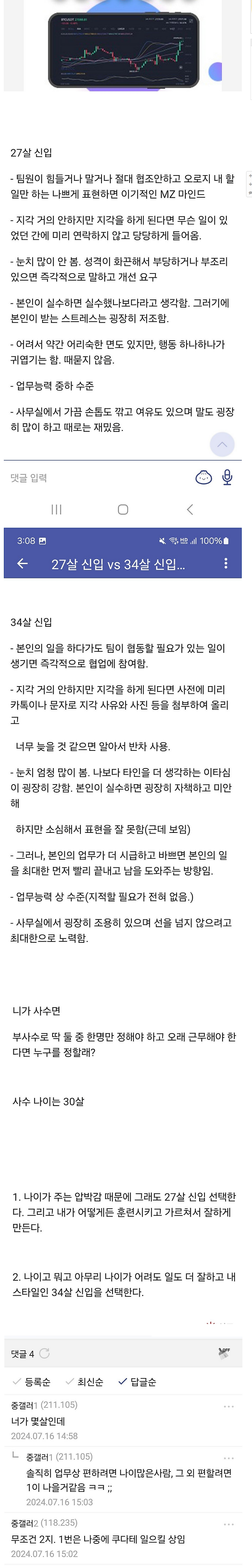 27살 신입 vs 34살 신입 중 누가 더 껄끄러울까?