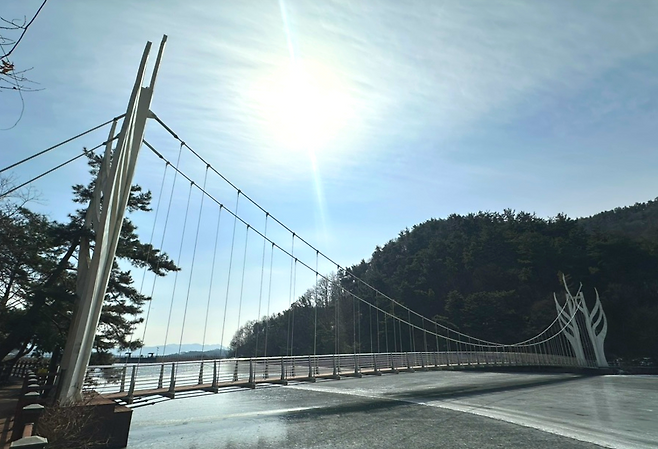 공원 산책로의 하이라이트는 길이 84m의 출렁다리입니다.