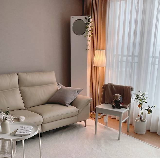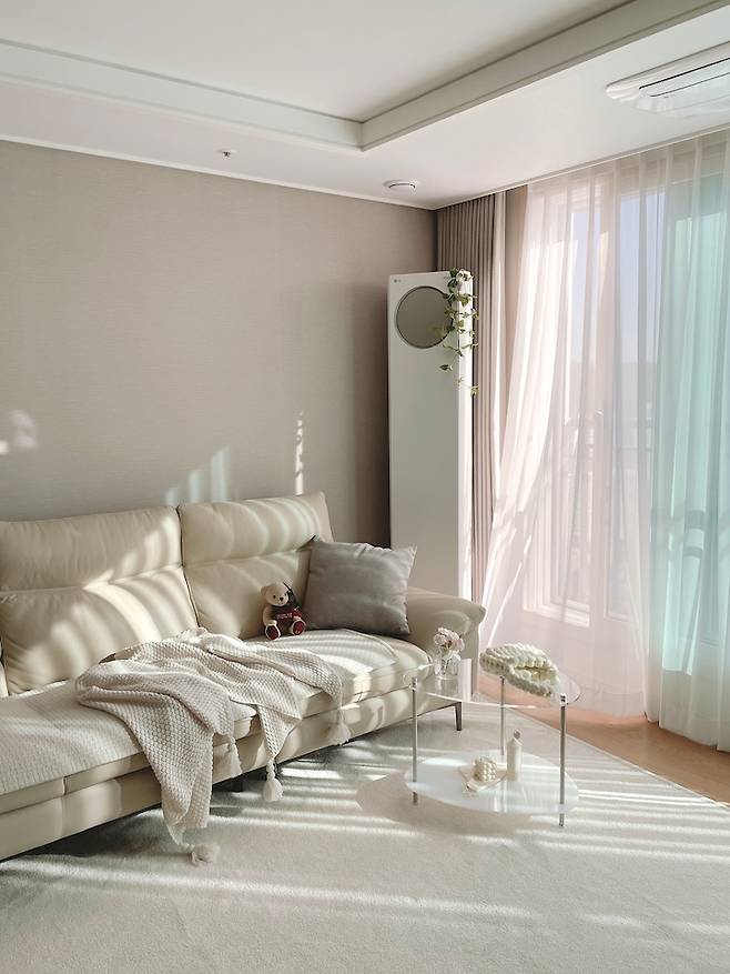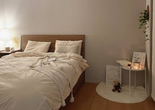 - 큰 가구는 화이트와 베이지 톤으로 톤앤톤 스타일링