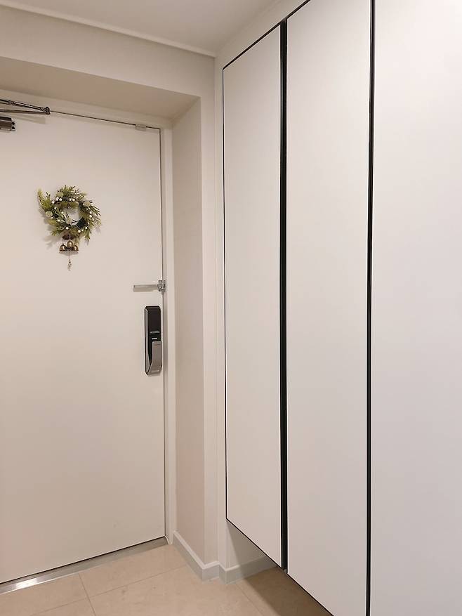 💡 시트지 시공, 어두운 느낌의 현관에서 밝은 공간으로 변화 주기집 안에 들어올 때 가장 먼저 마주하는 공간이 바로 현관이기 때문에, 기존의 어두웠던 블랙 현관문과 메탈 느낌의 신발장을 밝은 공간으로 변화를 주고 싶었어요. 가장 간단하면서도 최소한의 예산으로 변화를 줄 수 있는 것이 시트지 시공이었고, 화이트 시트지로 밝은 현관을 얻게 되었어요.