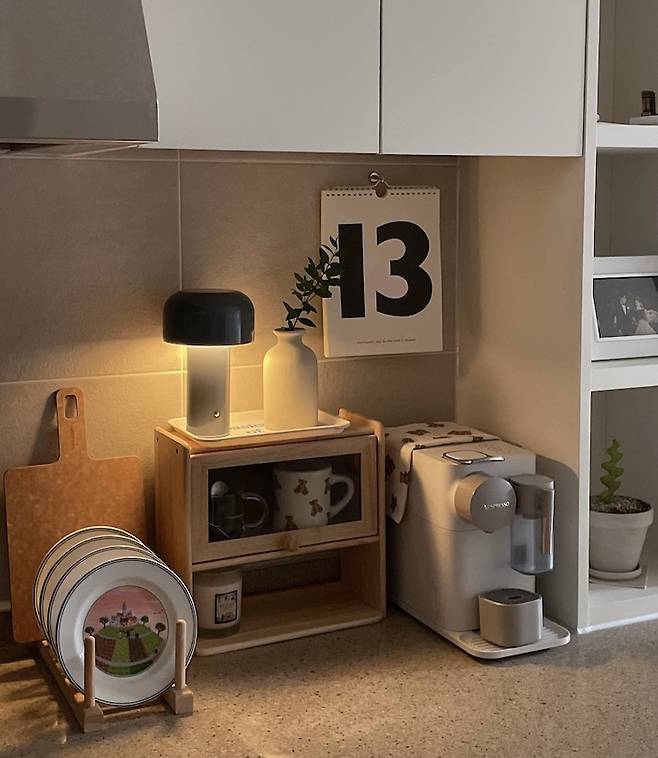 주방에 USB 충전식 조명도 소품으로 두니 또 아늑한 감성이 들기도 해요:) 어두운 저녁에 잠시 물 마시러 나왔을 때 형광등을 키면 눈이 아픈데, 은은한 조명을 켜두면 아늑하고 따뜻한 느낌으로 잠시 기분이 좋아지는 것 같아요.