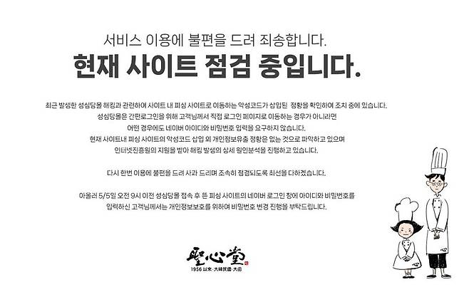 성심당 측은 안내문을 통해 '5일 오전 9시 이전 성심당몰 접속 후 뜬 피싱 사이트의 네이버 로그인 창에 아이디와 비밀번호를 입력하신 고객님께서는 개인정보보호를 위해 비밀번호 변경 진행을 부탁드린다'고 당부하고 "해킹 발생의 상세한 원인분석과 더불어 홈페이지를 조속한 시일 내에 복구할 수 있도록 노력하겠다"고 밝혔습니다.