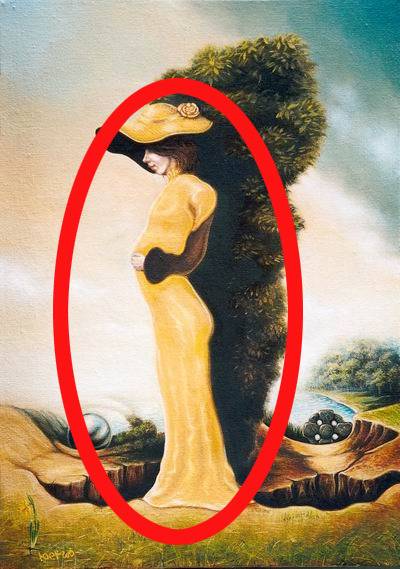 그림을 뒤집어 보면 임신한 여성이 보입니다