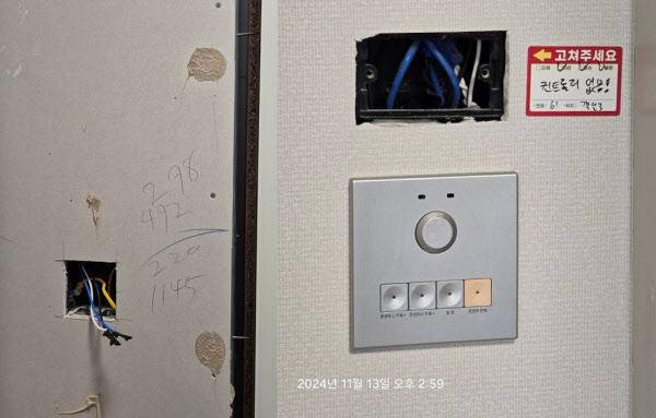 ‘롯데캐슬 르웨스트’는 준공 석달 차에 접어들었지만, 누수와 마감재 파손 등 대부분 하자가 해결되지 않고 있다. 입주 예정자들은 부실 시공이 명백하다며 시행사에 하자 보수 완료 후 입주하겠다는 뜻을 밝혔다. 그러면서 입주 기한을 당초 이달 29일에서 공사가 끝나는 시점으로 연장해 달라고 요청하고 있다.