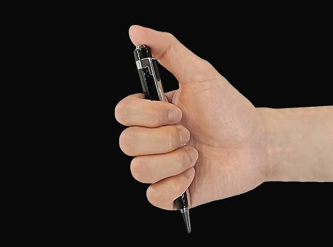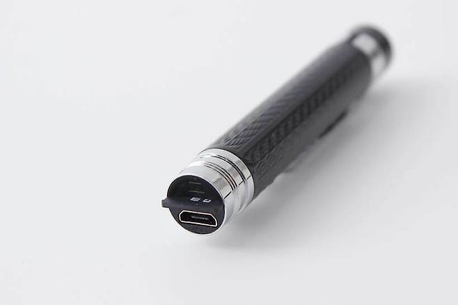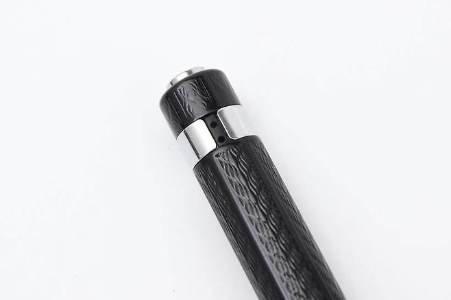 외형만 놓고 보면 그냥 볼펜이다. 아무런 의심의 여지 없이 검은색 고급 볼펜 그대로의 모습을 하고 있다. 다만 중간쯤 붙어있는 16GB라는 스티커가 무언가 저장 기능이 있음을 보여주기 때문에 사용 시에는 제거하는 것이 좋겠다. 배럴은 전체적으로 물결무늬가 들어가 있어서 그립감을 높여주고 있다.