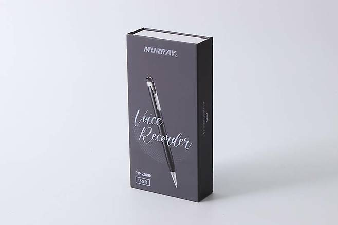 머레이 볼펜 녹음기 보이스 레코더 PV-2000은 회색 박스 패키지에 담겨있다. 박스는 자석을 이용해 덮개를 열고 닫는 방식으로, 고급스러운 느낌을 전해준다.