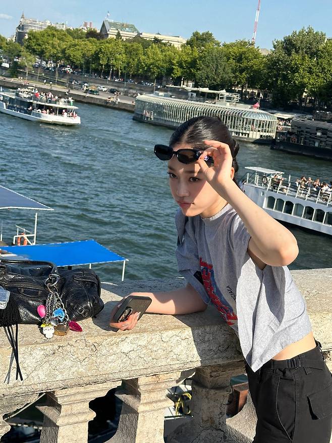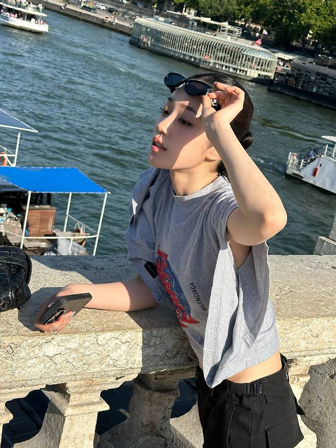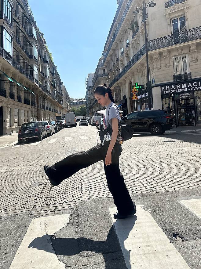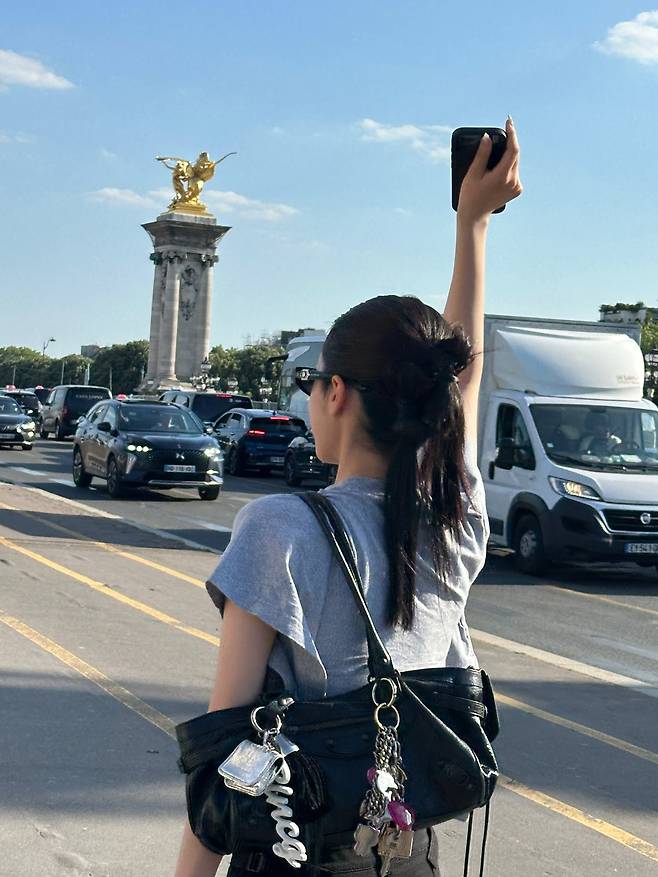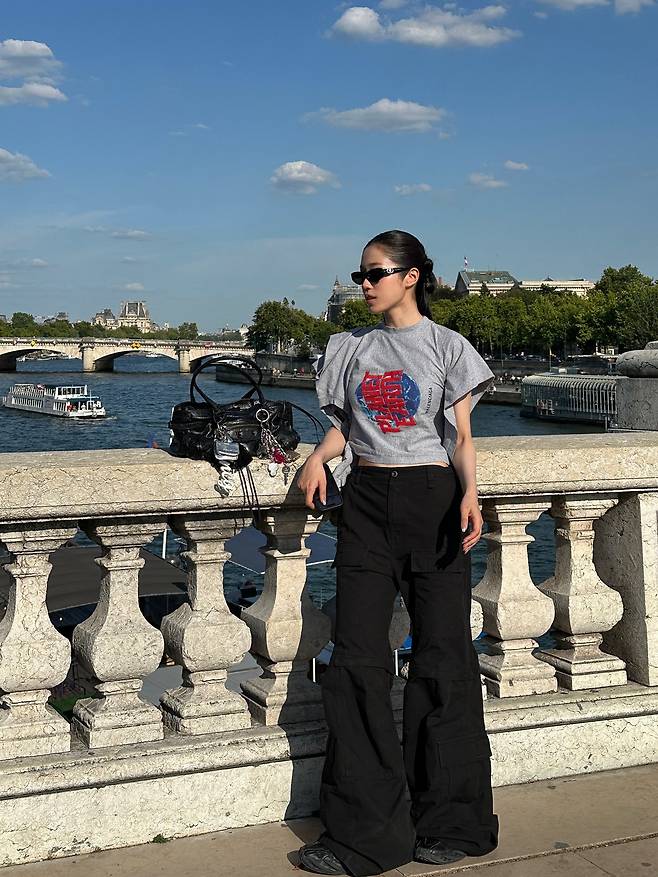노윤서는 파리의 다리 위에서도 중심을 잃지 않는 스타일을 보여줬어요
