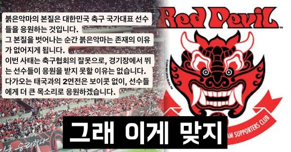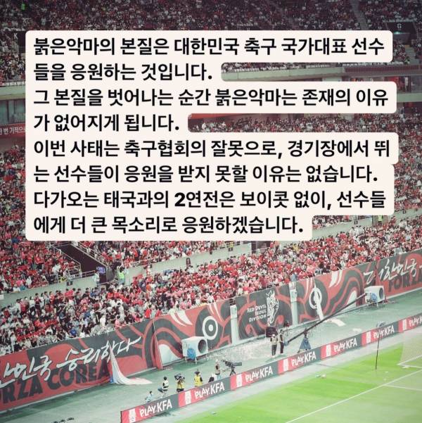 태국전 보이콧 이야기가 나오는 상황, 붉은악마의 공식 입장이 나왔다