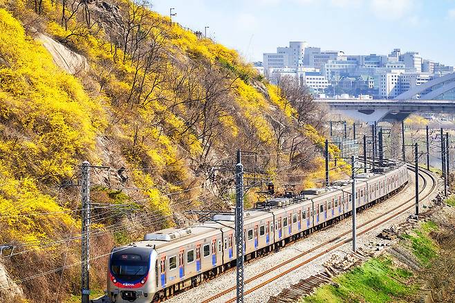 하지만 개나리의 진정한 아름다움을 제대로 감상하려면, 서울의 대표적인 개나리 명소인 응봉산을 찾아가야 한다.