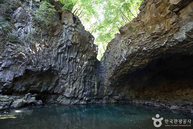 경기도 포천시 한탄강 유네스코 세계지질공원 구역 안, 숲 속 깊숙이 자리한 '비둘기낭 폭포'는 그 이름처럼 비둘기 둥지를 닮은 지형에 둘러싸여 있습니다.