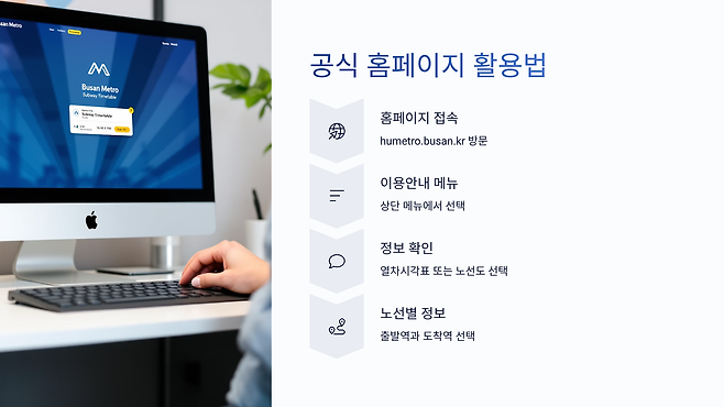 부산 지하철의 가장 정확하고 최신 정보를 얻는 가장 좋은 방법은 부산교통공사 공식 홈페이지를 이용하는 것입니다.