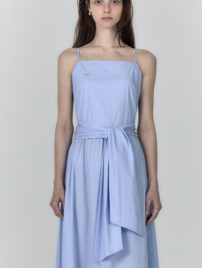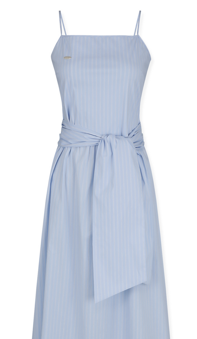 사진 속 원피스 정보 - aviemuah tie-waist-striped-cotton-poplin-dress