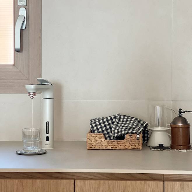 주방 인테리어 후 제가 가장 만족스러운 가전은 바로 직수형 정수기예요. 평소에 물을 엄청 마시는 남편 때문에 정기적으로 생수를 배송하고, 브라타 정수기를 사용했기 때문에 매번 분리수거랑 필터 관리가 힘들었거든요. 직수형 정수기로 교체 하고 나니 편리함 때문에 더 자주 물을 마시게 되어 건강도 함께 챙기게 됐어요.