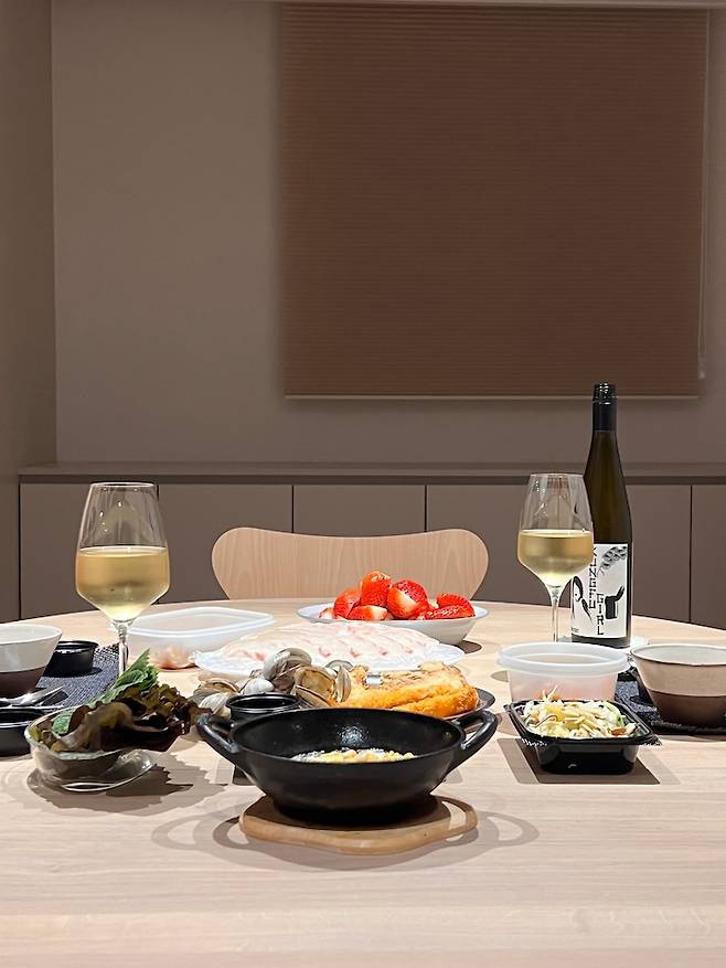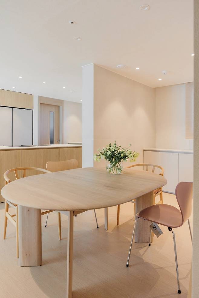 다이닝 공간에서 가장 큰 가구인 식탁을 3개월 동안 정말 열심히 찾아보고 고른 것 같아요. 2인 가구지만 종종 지인들을 초대해 식사하는 걸 즐기기 때문에 6인 테이블 정도는 사고 싶었거든요.